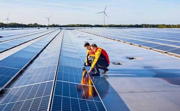 Le programme de durabilité de Deutsche Post DHL comprend des investissements à hauteur de 600 millions d'euros dans la mobilité électrique et les infrastructures. Nous équipons nos sites de production avec de la photovoltaïque, des pompes à chaleur et des systèmes automatisés. Nous appliquons systématiquement un concept de construction durable à tous nos sites de production.